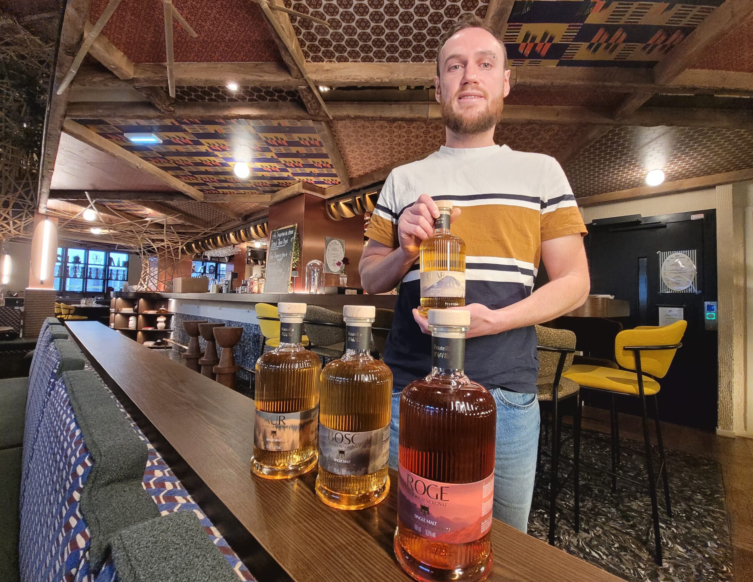 L’ingénieur agronome et œnologue originaire du cru a passé quinze ans à voyager dans les vignobles et les distilleries de France et d’ailleurs avant ce retour aux sources. « Je suis né ici. Je voulais revenir en local, recréer quelque chose qui avait disparu. » Le projet germe en 2017, les premières gouttes sortent en 2021. Et en novembre dernier, lors du salon Origine Auvergne, il dévoile quatre whiskies d’exception – numérotés et lauréats des Sommets du terroir 2025.